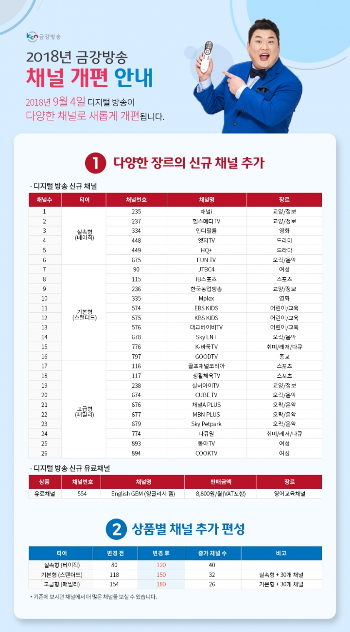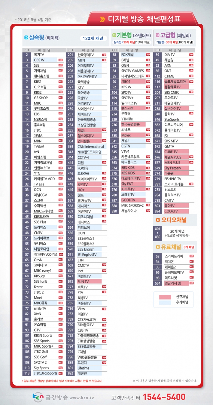 [공지] 2018년 KCN 금강방송 채널 개편 안내